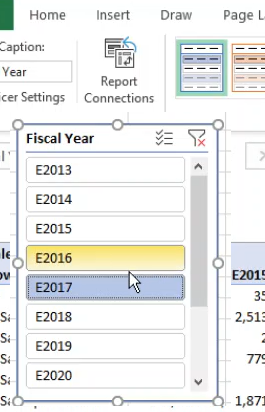 Lorsque l'on utilise des tableaux croisés dynamiques, il peut être plus intéressant visuellement d'utiliser des slicers pour filtrer une dimension d'analyse.
