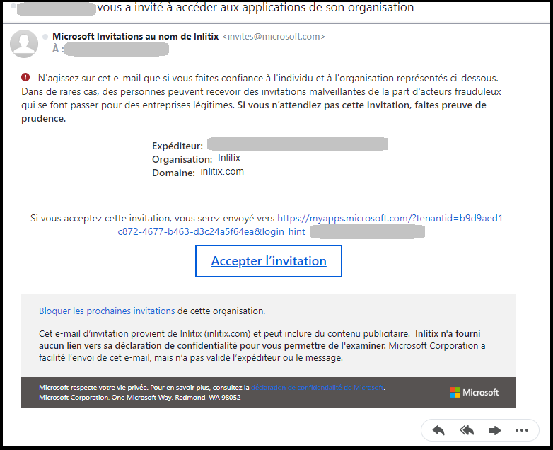Suite à votre demande à support@inlitix.com, vous recevrez un premier courriel qui vous invite à rejoindre l'organisation inlitix.com. Voici un exemple de courriel: