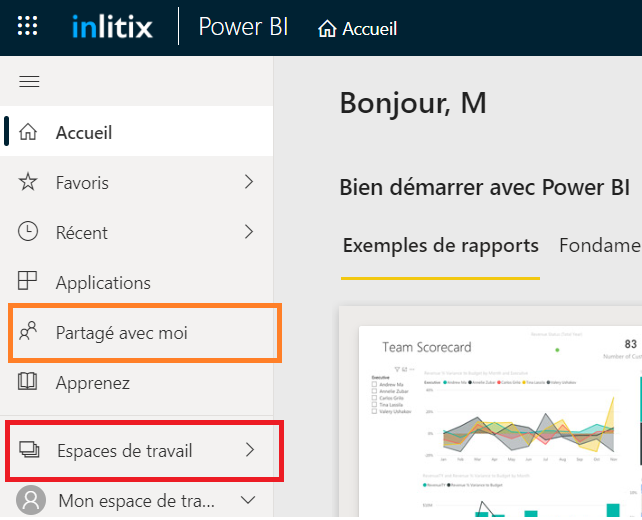 Il est possible qu'au tout premier accès les rapports ou espaces de travail attendus ne soient pas visibles. Forcer le rafraîchissement de la page web (CTRL+R) devrait corriger la situation.